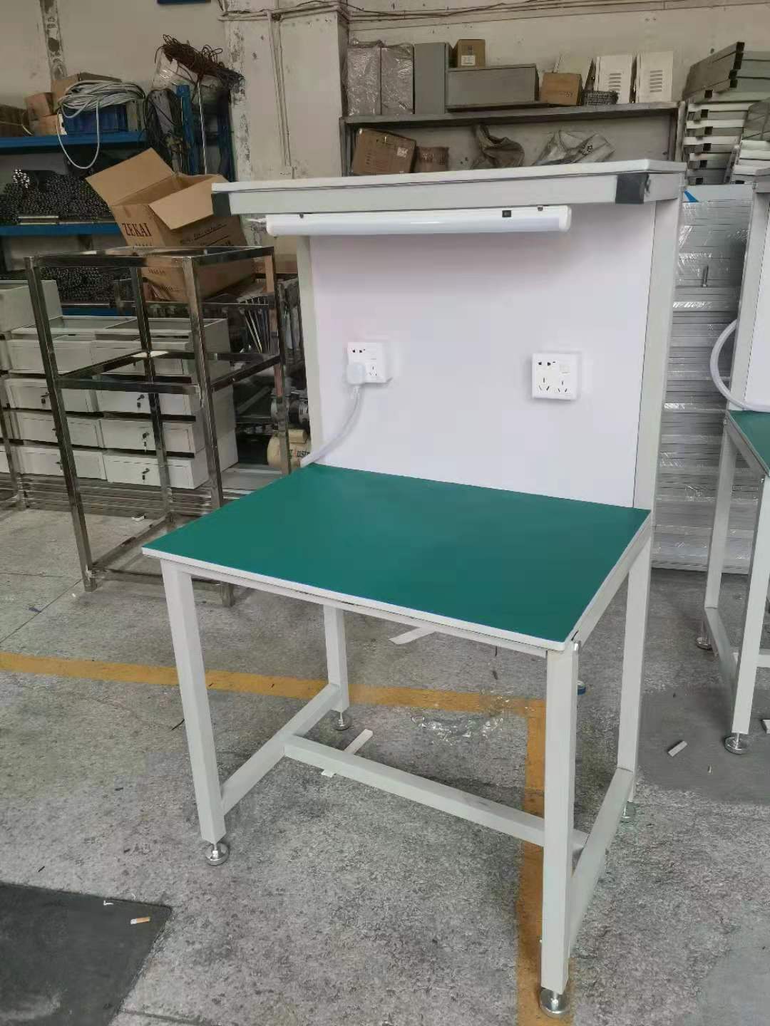 5.可配置:照明燈,工藝卡,插座,物料臺,吸煙罩,氣管,風(fēng)批吊軌,電風(fēng)扇等。