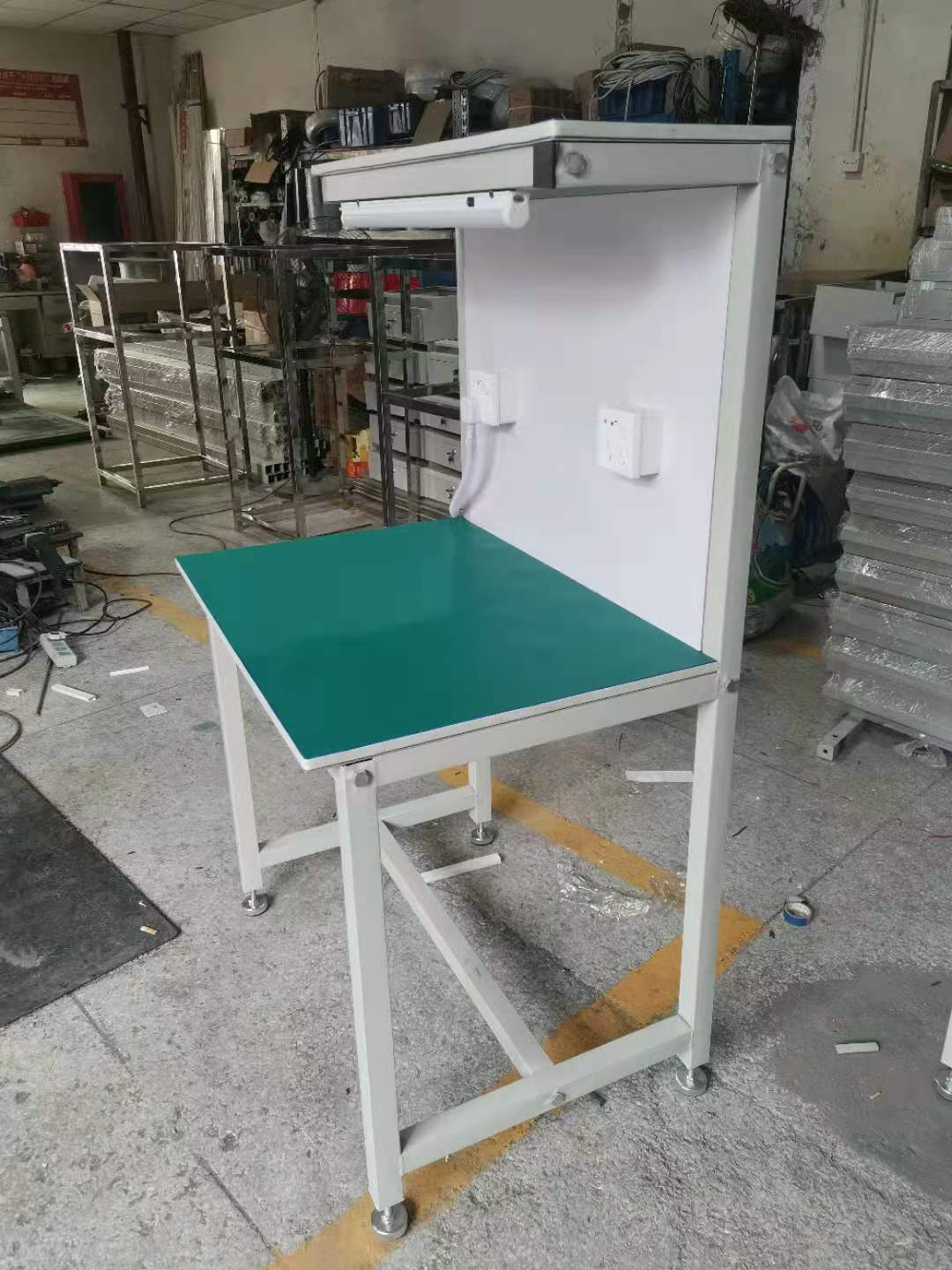 5.可配置:照明燈,工藝卡,插座,物料臺(tái),吸煙罩,氣管,風(fēng)批吊軌,電風(fēng)扇等。
