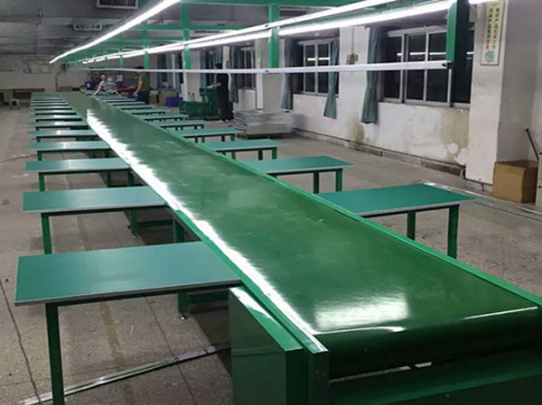 4. 輸送帶:寬20-80cm 厚2.0mm或3.0mm綠色PVC皮帶。皮帶下方采用¢25或¢38鍍鋅滾筒承托,間距每27CM一支小滾筒。