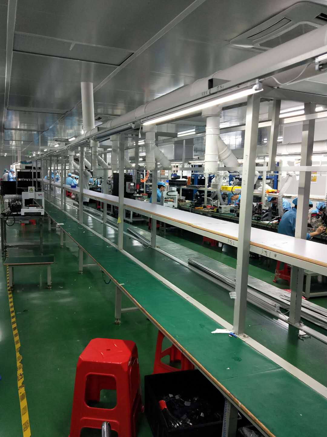 1.流水線主體材質(zhì):鐵方通,表面為白色烤漆。