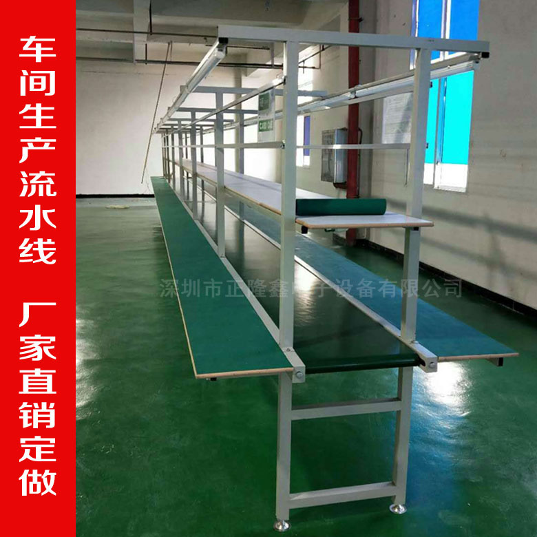 1.流水線可任意長(zhǎng),皮帶寬500MM,兩邊工作臺(tái)400MM(流水線皮帶寬/工作臺(tái)寬度可定制)。
