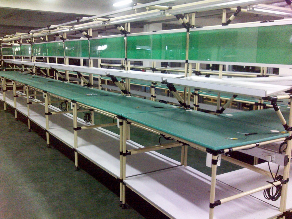 深圳精益管工作臺也稱線棒工作臺直徑28mm 厚度分為0.8mm、1.0mm、1.2mm的精益管(覆塑管)配合種類豐富的連接件,并根據(jù)作業(yè)需要安裝臺面板,電源排插等其它一些應用組裝而成的工作臺??瑟毩ⅰ⒖山M合、易于調(diào)整,可根據(jù)作業(yè)需要自由設計組裝。適用于各種行業(yè)的檢測,維修及產(chǎn)品組裝;讓工廠更整潔,生產(chǎn)安排更輕松、物流更流暢。能適應現(xiàn)代生產(chǎn)不斷改善的需求,符合人機原理,使現(xiàn)場工作人員操作標準,舒適,對環(huán)境的構思和創(chuàng)意迅速的實現(xiàn),同時它具有輕便,結實等特點,表面潔凈耐磨。