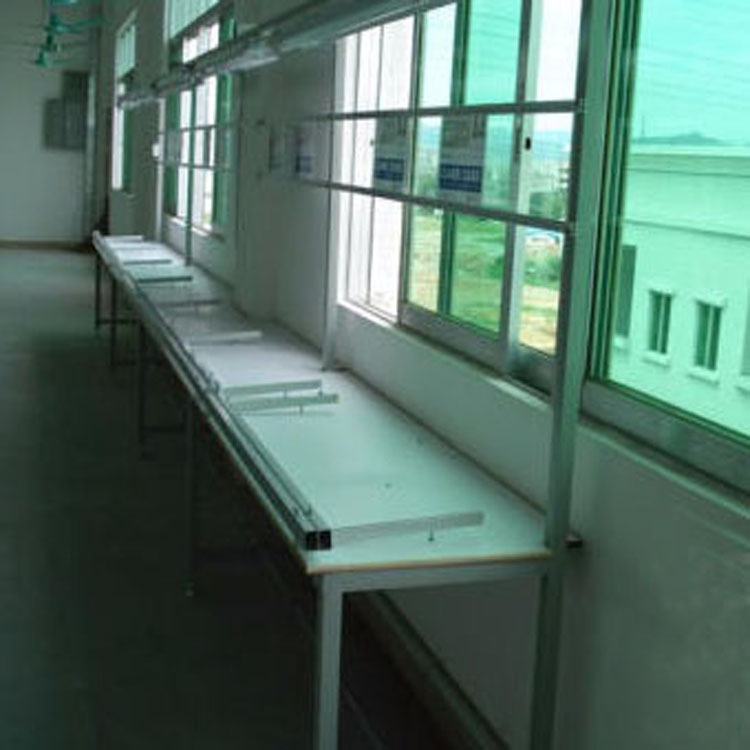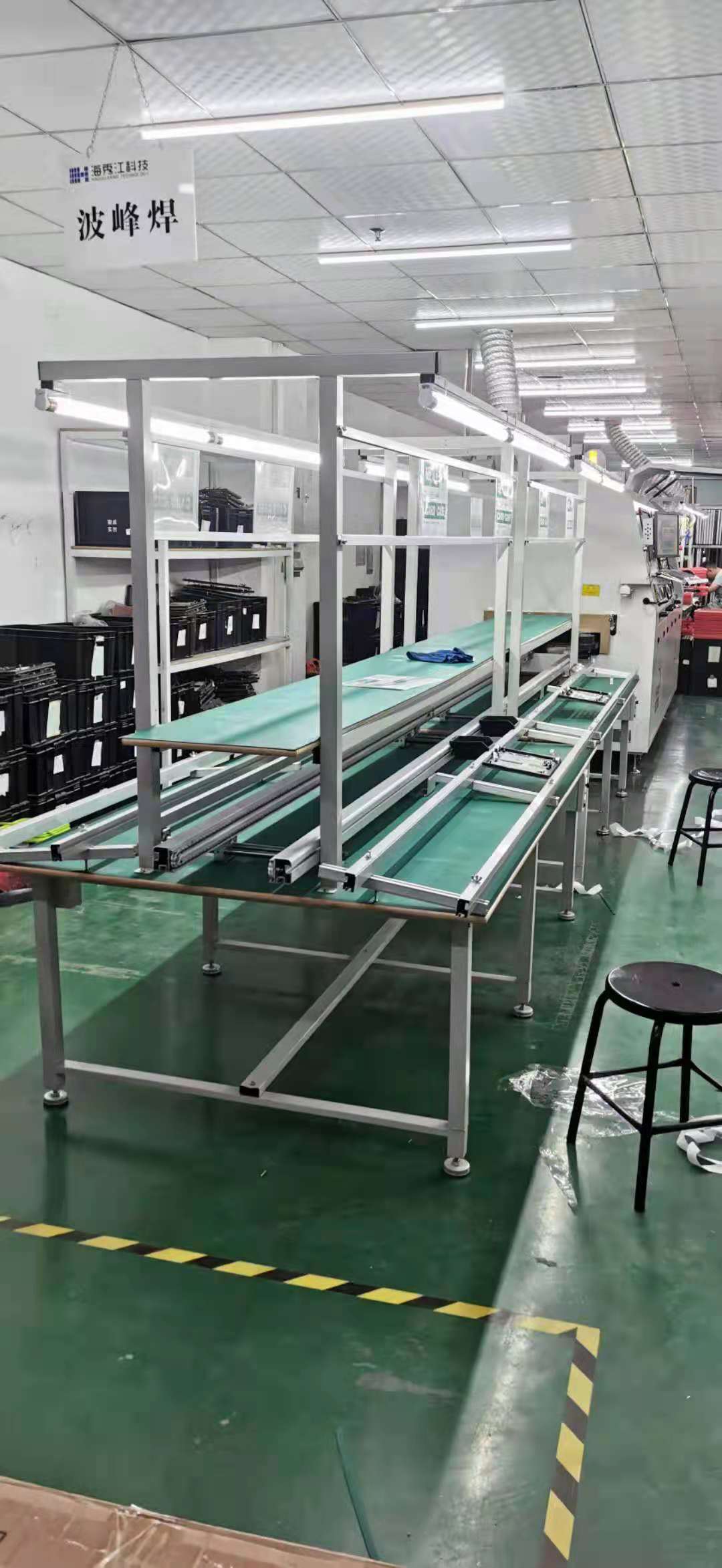 3.手推插件線采用鋁型材導(dǎo)軌作為輸送介質(zhì),所以該線體摩擦力小,無噪音,也無需加任何潤滑油,對所輸送的印制板無任何污染。